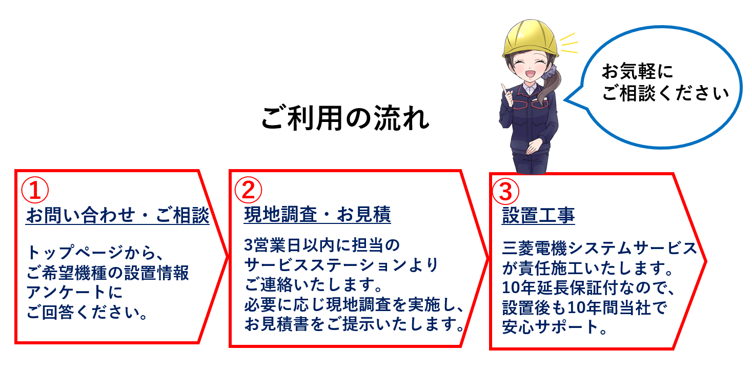 購入・機種選定・お見積・設置工事 まずは無料でご相談ください。